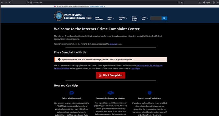 IC3 : https://www.ic3.gov