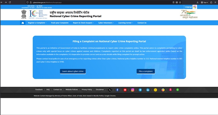 Portal: https://www.cybercrime.gov.in