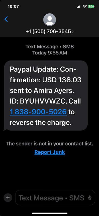 838-900-5026 - A PayPal text scam is a phishing scheme where scammers send fake text messages pretending to be from PayPal. The message often claims there?s suspicious activity, a locked account, or a payment issue, urging the victim to click a link to ?verify? their account. These links lead to fake PayPal websites designed to steal login credentials, credit card numbers, or personal information. Some messages may also request direct payments or confirmation codes. Real PayPal messages never ask for sensitive details via text.