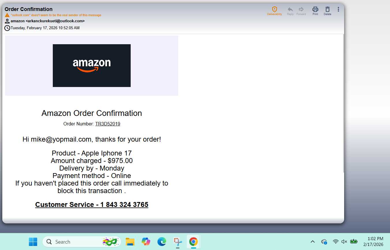 843-324-3765 - Amazon Scam - The Amazon scam involves various fraudulent activities where scammers impersonate Amazon or its representatives to deceive individuals. Common tactics include sending phishing emails or making phone calls claiming that there is an issue with the victim's Amazon account, such as a suspicious order, a problem with payment details, or a need to update account information. These communications often contain links to fake websites that mimic the Amazon login page, where victims are prompted to enter their account credentials and personal information. Scammers may also send fake order confirmations or refund offers, asking for payment or personal details to process the transaction. To avoid falling victim to an Amazon scam, individuals should be cautious of unsolicited messages, always verify the authenticity of any communication by logging into their Amazon account directly through the official website, and never provide personal or financial information in response to unsolicited requests.
